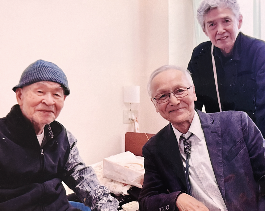新しく役員になった廿日市在住の岡本礼子さんに道案内をお願いし、校友の山本美次さん宅を訪ねました。大きな神社のすぐ近くにあるお宅は、緑と明るい日差し、清らかな空気に包まれ、とても心地よい空間でした。山本さんご夫妻に温かく迎えていただき、素晴らしい時間を過ごすことができました。この取材は本当に面白く、お話の中で文章にまとめられたのはほんの一握りです。次回は奥様から、山本さんの武勇伝などもぜひお聞きしたいと思います。